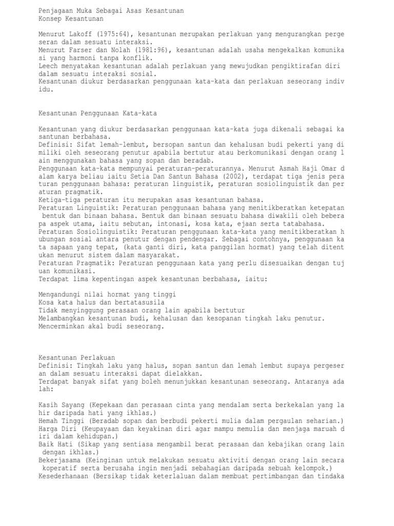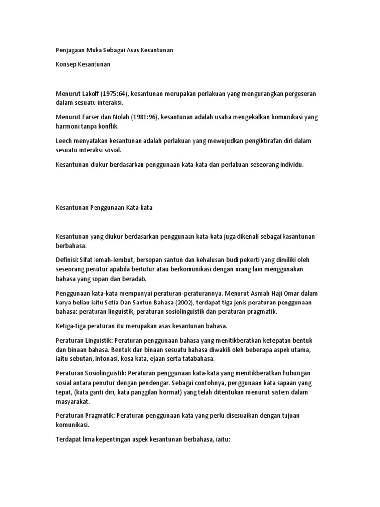 Penjagaan Muka Sebagai Asas Kesantunan Pdf Document