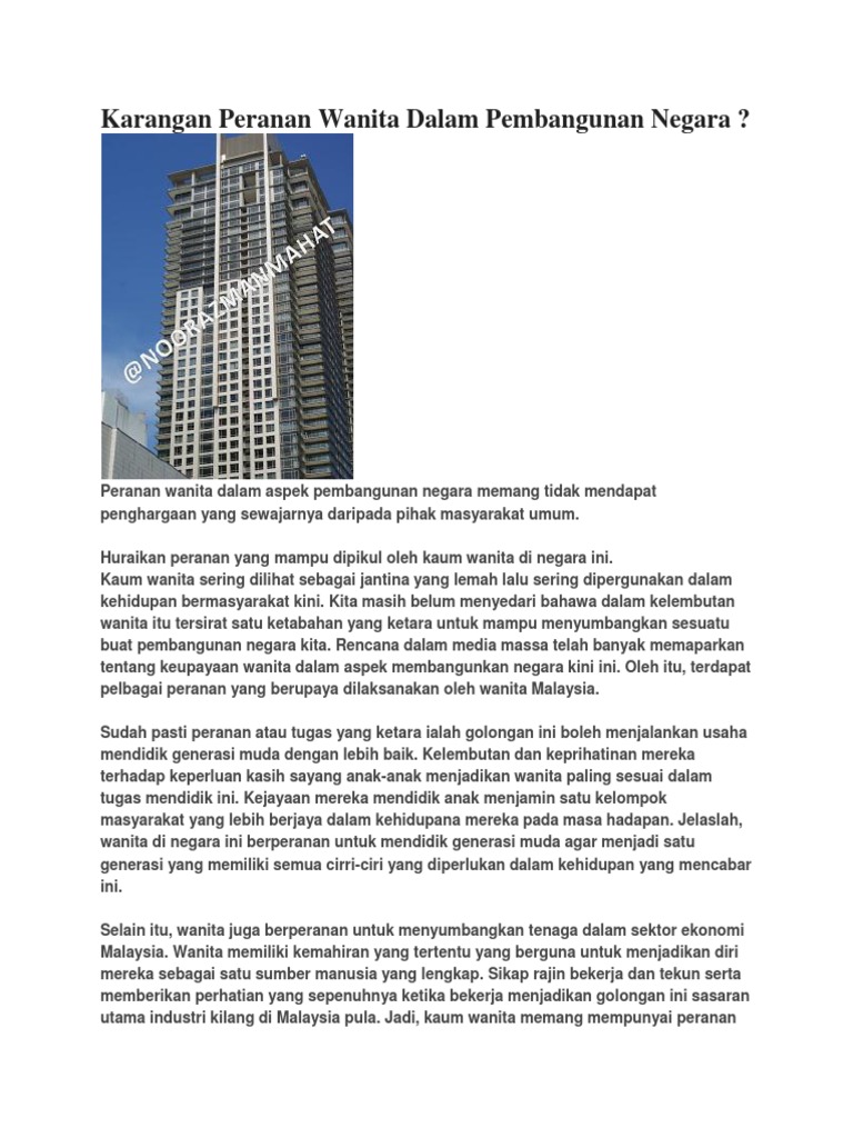 Karangan Peranan Wanita Dalam Pembangunan Negara