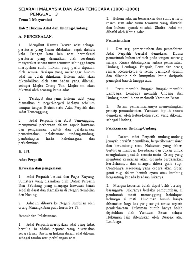 Perbezaan Adat Perpatih Dan Adat Temenggung Stpm