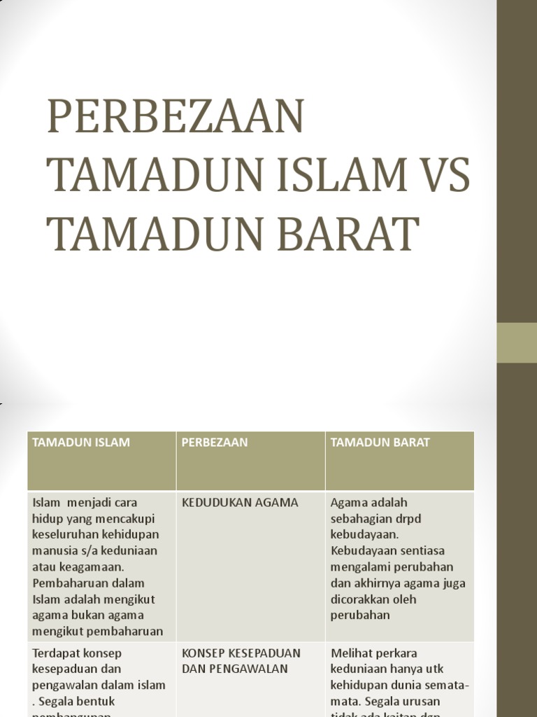 Perbezaan Tamadun Islam Dan Tamadun Barat