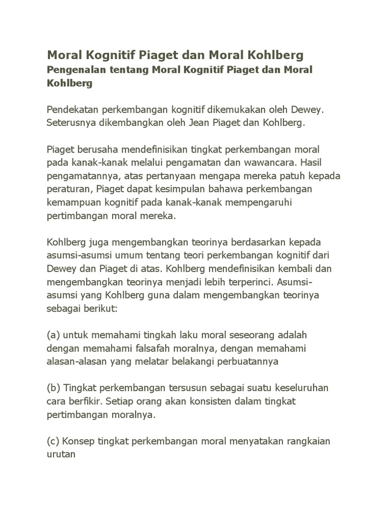 Perkembangan Moral Pada Anak Dan Relevansinya