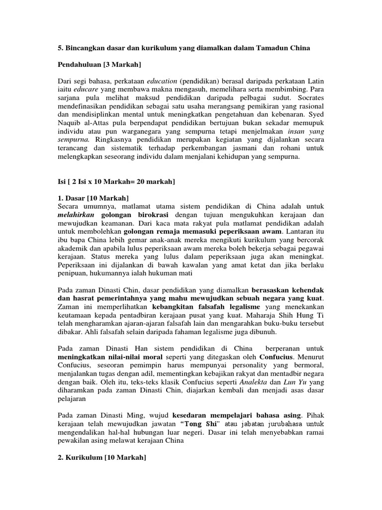 Dasar Dan Kurikulum Pendidikan Tamadun China