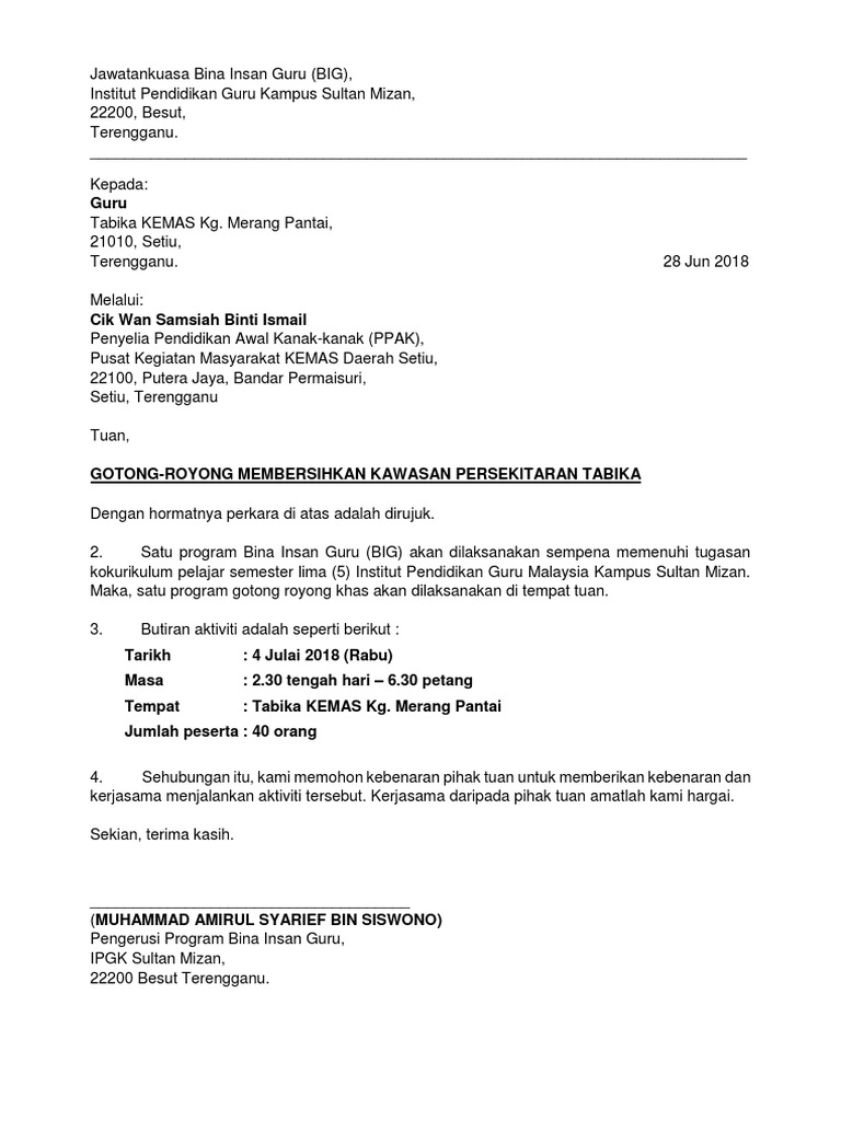 Surat Untuk Tadika Official