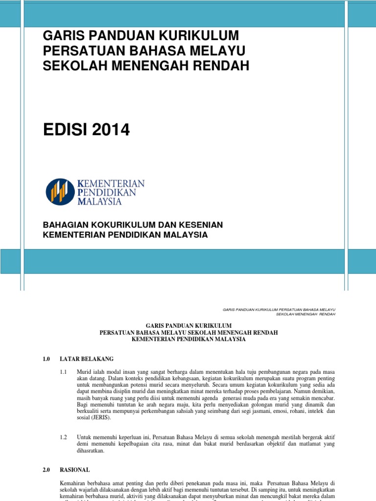 1 Garis Panduan Kurikulum Persatuan Bahasa Melayu Sekolah Menengah Rendah Pdf