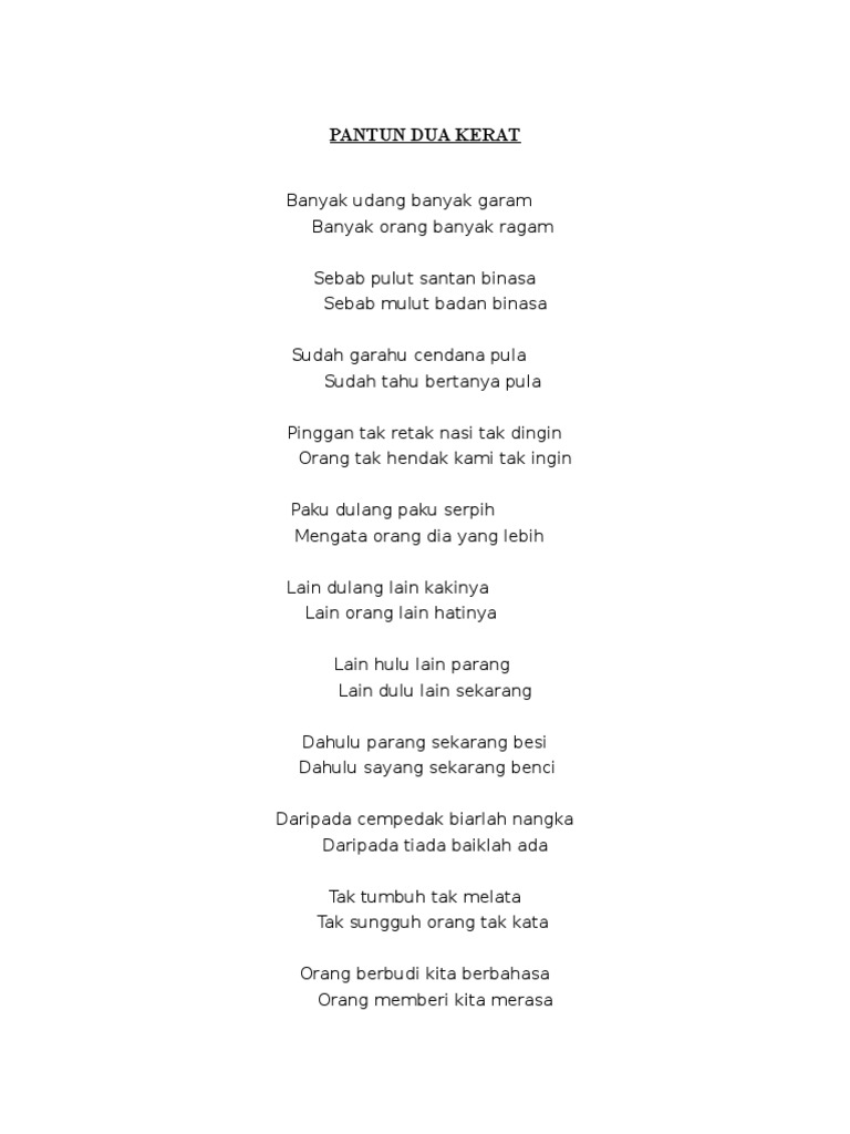 Pinggan tak retak nasi tak dingin pantun. Itu pantun sindirin ja. Pantun seloka sindiran al lavendri dibeli oleh nuar haruha pada sep 19 2011. Ikan sembilang di balik batu sudah dibilang jangan mengganggu. Orang tak hendak aku pun tak ingin itulah pelengkap bagi pembayang pantun dua kerat di atas.