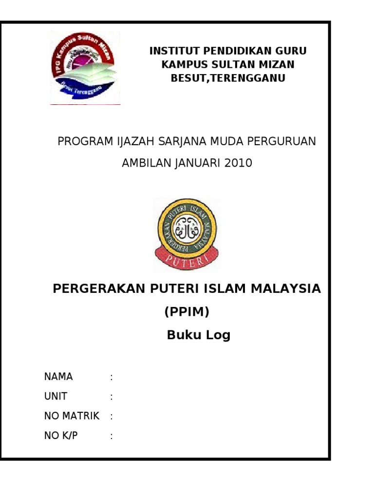 Program Ijazah Sarjana Muda Perguruan Ambilan Januari 2010 Pergerakan Puteri Islam Malaysia Ppim Buku Log