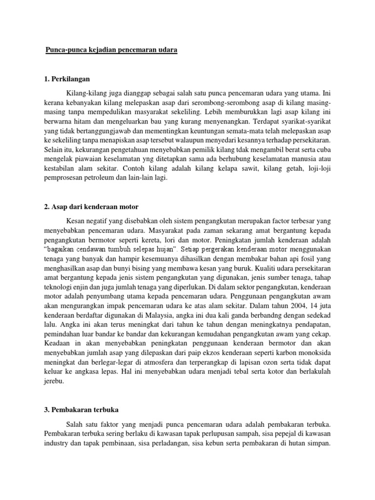 Karangan Fakta Punca Punca Berlakunya Pencemaran Alam Docx
