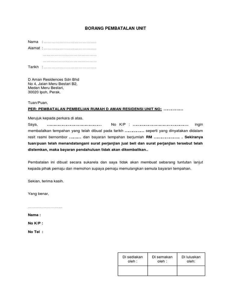 Contoh Surat Rasmi Pembatalan Pembelian Rumah Tracy Notes Cute766