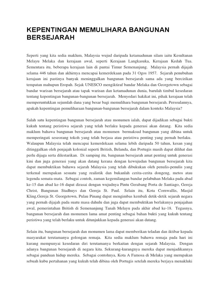 Kepentingan Memulihara Bangunan Bersejarah Cute766