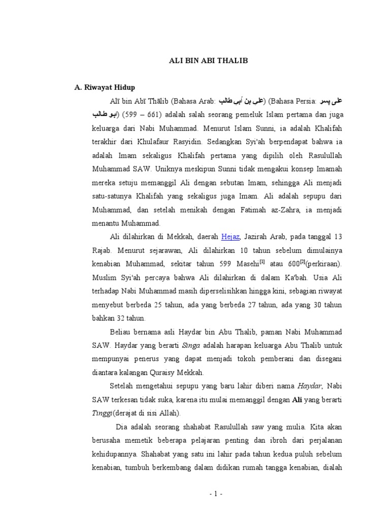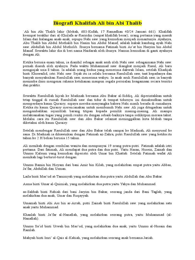 Biografi Dan Kisah Kepemimpinan Khalifah Ali Bin Abi Tholib Docx