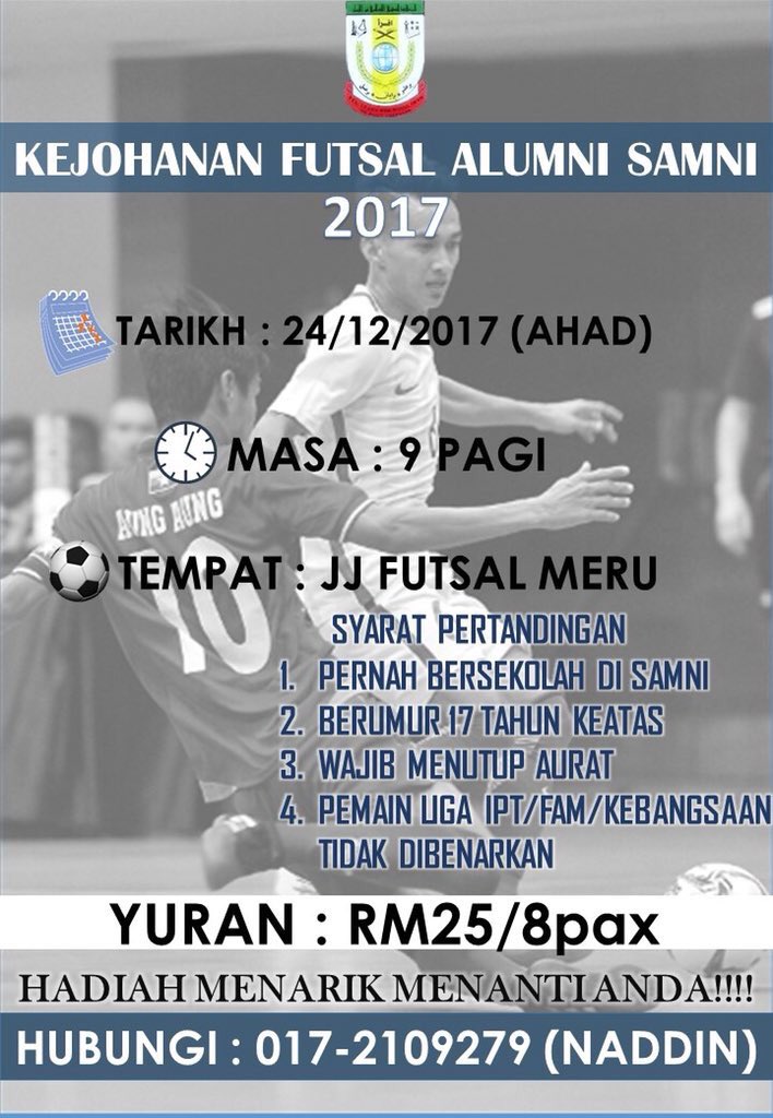 Samni On Twitter Berita Baik Untuk Para Alumni Sam Nurul Iman Ayuh Kita Berfutsal Sambil Sambil Lama Tak Jumpa Tu Kan Details Program Seperti Di Bawah Boleh Terus Contact Abe Naddin Kamal