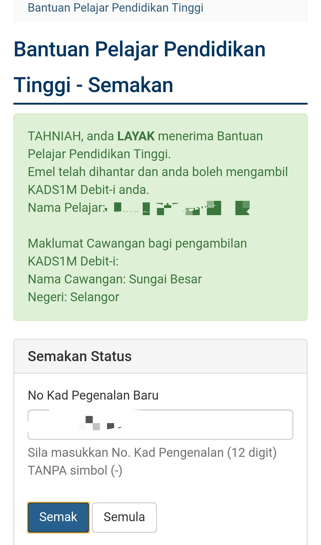 Semakan Bantuan Pelajar Pendidikan Tinggi