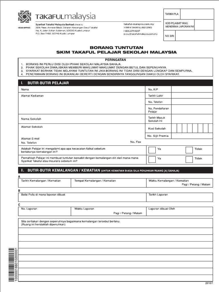 Borang Tuntutan Skim Takaful Pelajar Sekolah Malaysia