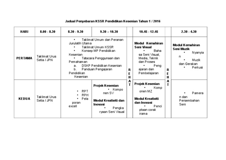 Jadual Penyebaran Kssr Pendidikan Kesenian Tahun 1 2016