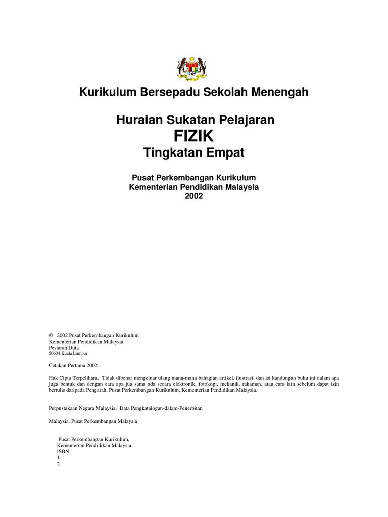 Sukatan Pelajaran Fizik Tingkatan 4 Sumber Pendidikan