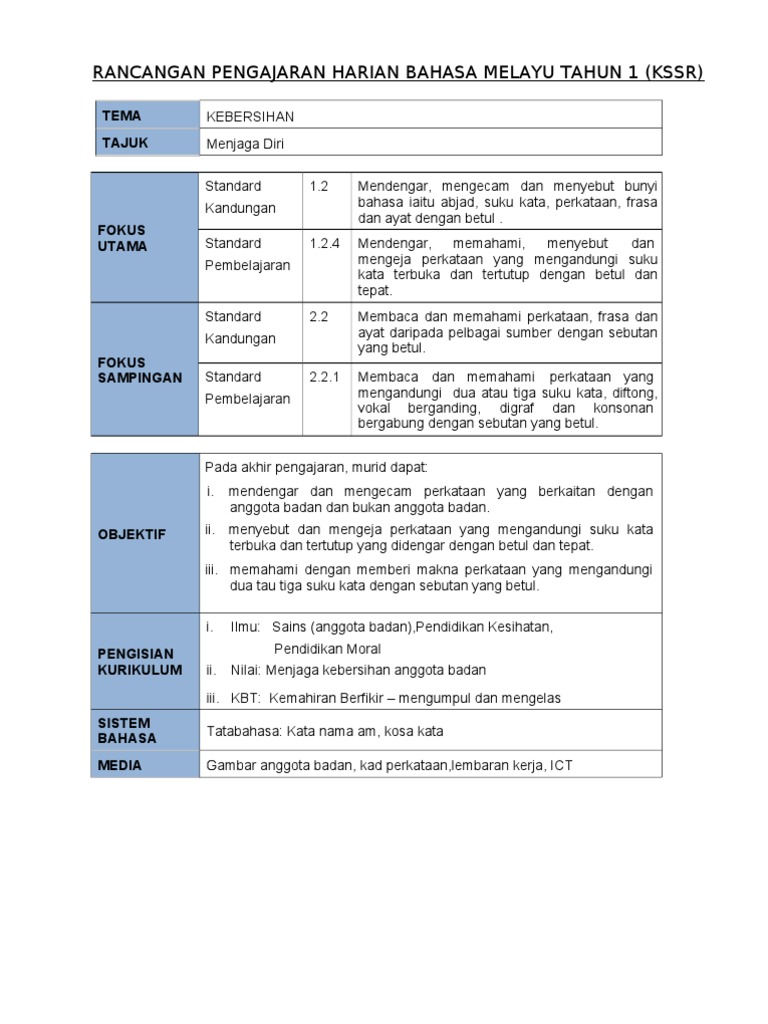 Asal Rph Bahasa Melayu Tahun 1 Kssr
