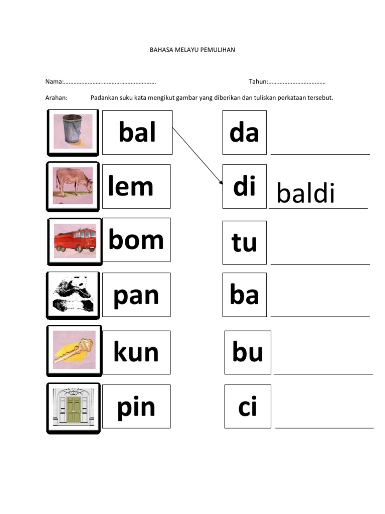 Suku Kata Kv Kvk Suku Kata Latihan Bahasa Melayu Tahun 1