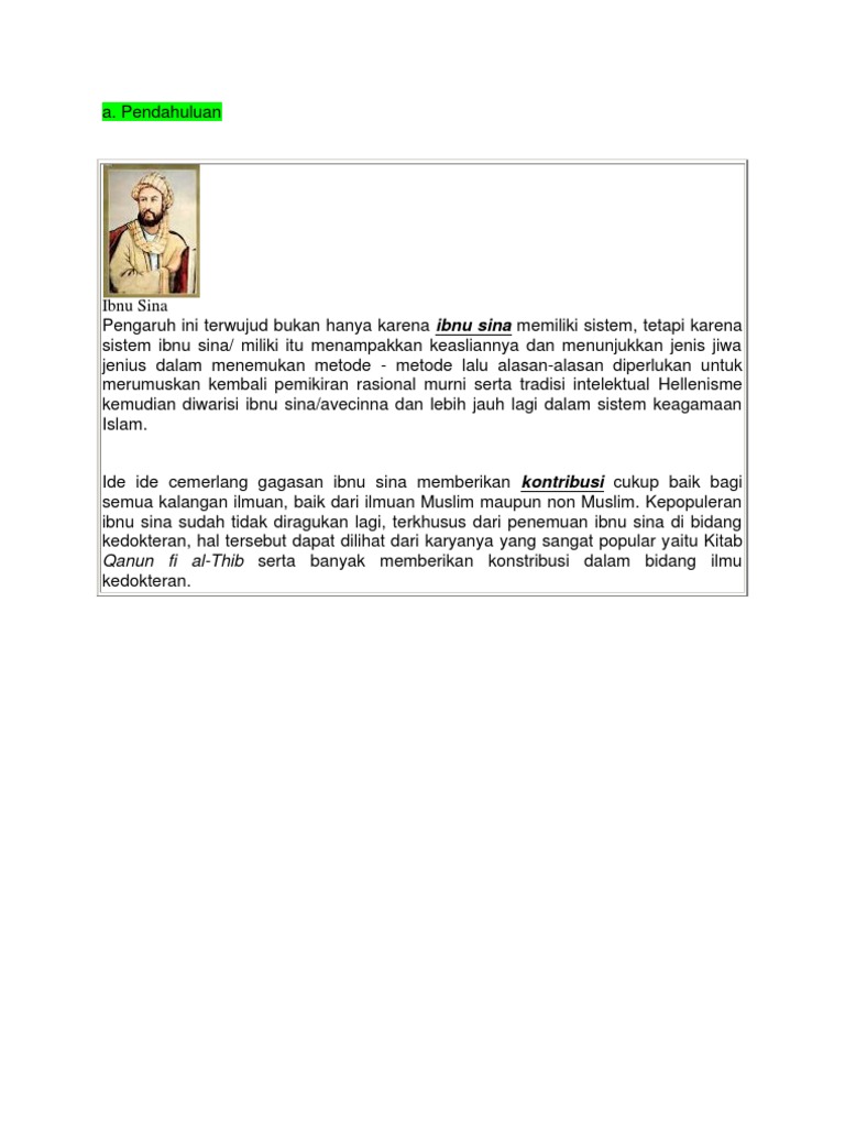 Doc Sejarah Dan Sumbangan Ibnu Sina Terhadap Perkembangan Peradaban Islam Di Dunia Athirah Rhyu Academia Edu