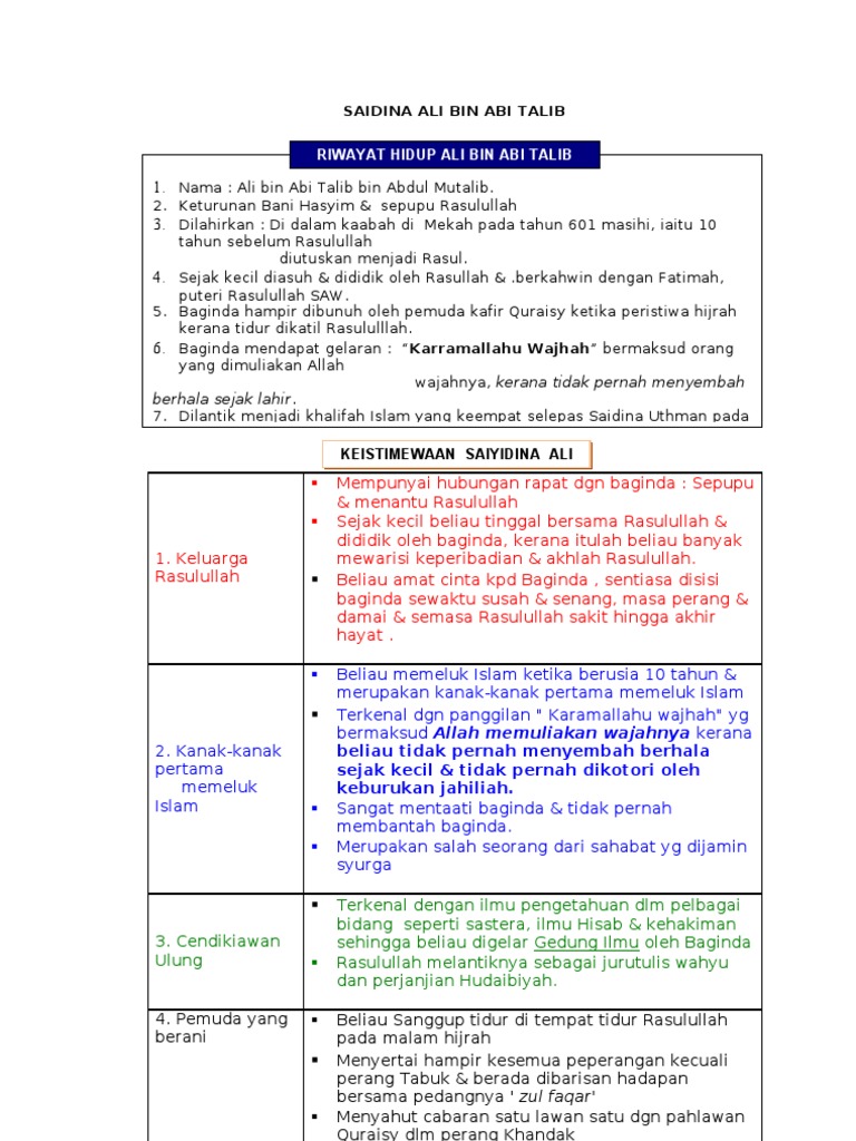 Pelajaran 21 Saidina Ali Bin Abu Talib