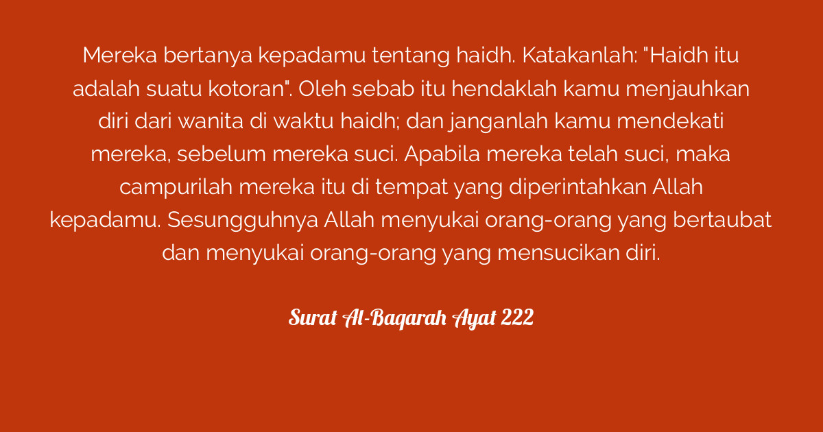 Mari bantu membagikan surat al baqarah dan terjemahan ini. Yang lebih dari keperluan. Pada ayat ini allah memberi tuntunan perihal aturan aturan dalam menjalin hubungan suami istri. Mereka bertanya kepadamu tentang haidh.