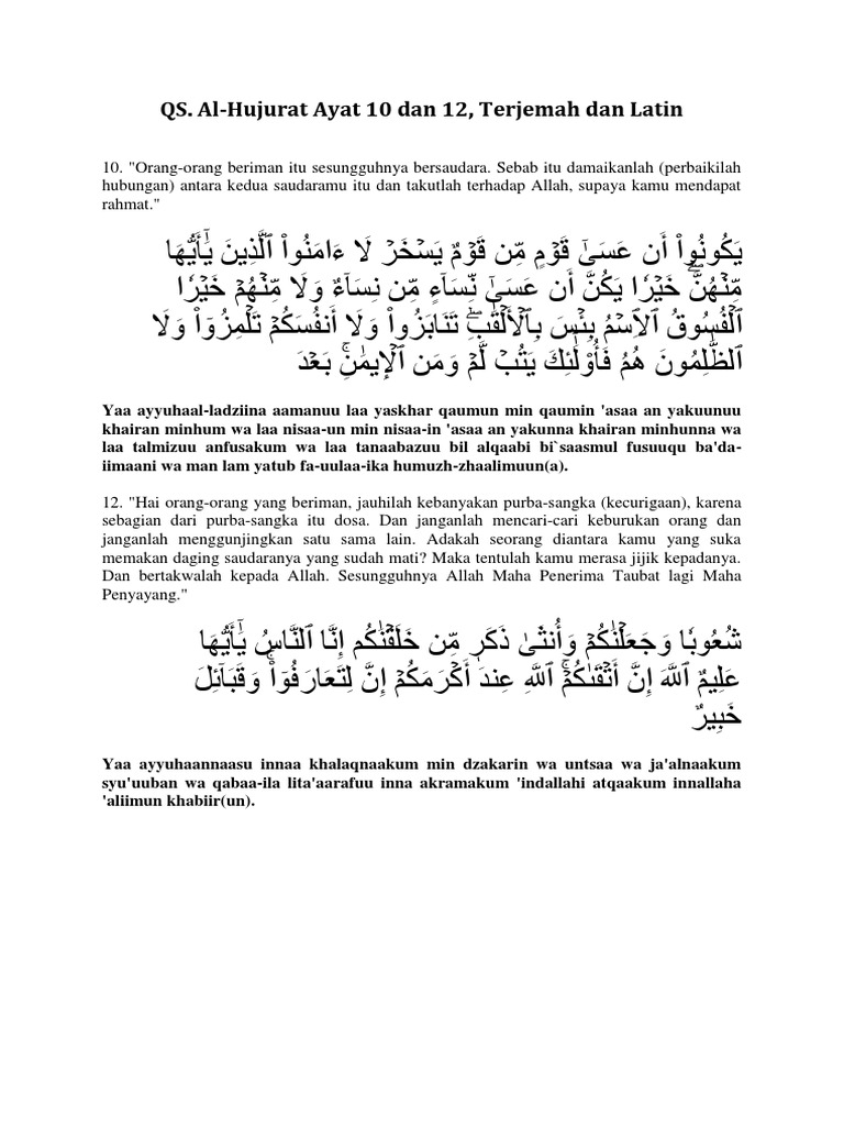 Arti Surat Al Hujurat Ayat 12 Bahasa Indonesia Tulisan Arab Dan Latin