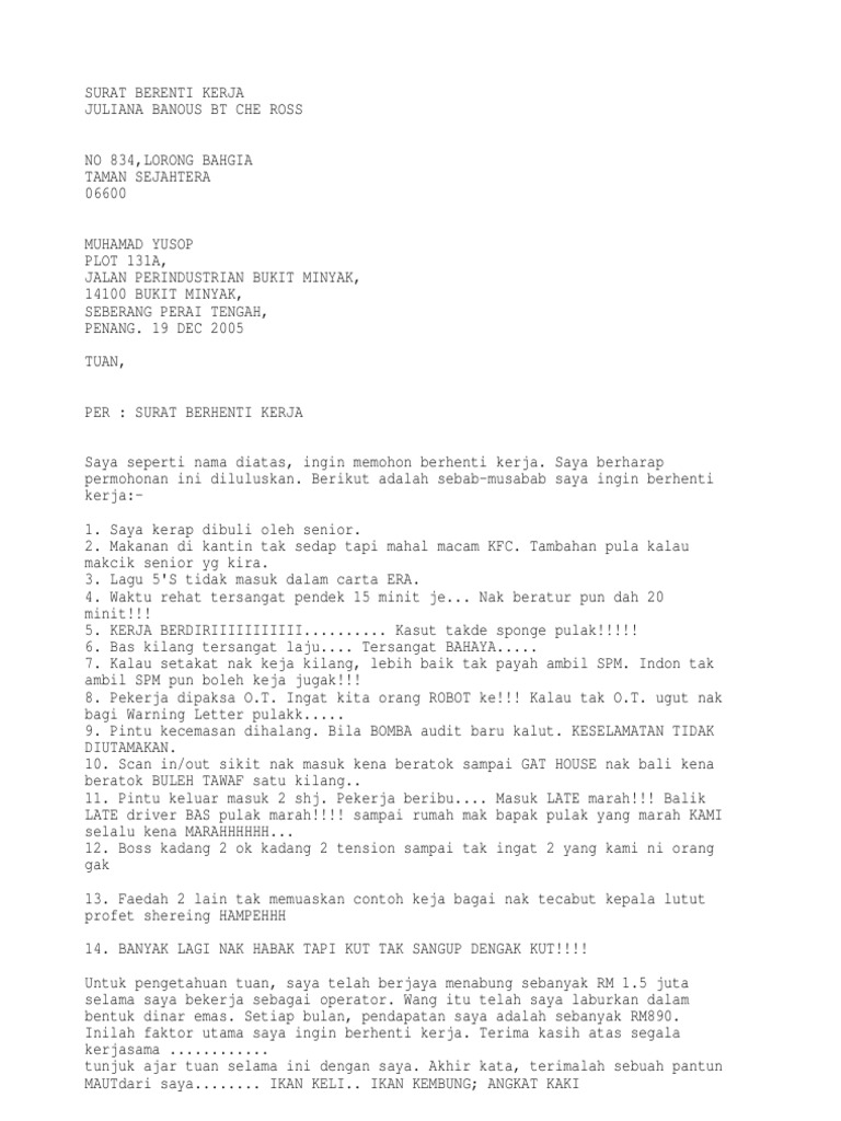 Contoh Contoh Surat Nak Berhenti Keja Nak Kerja Kilang Facebook