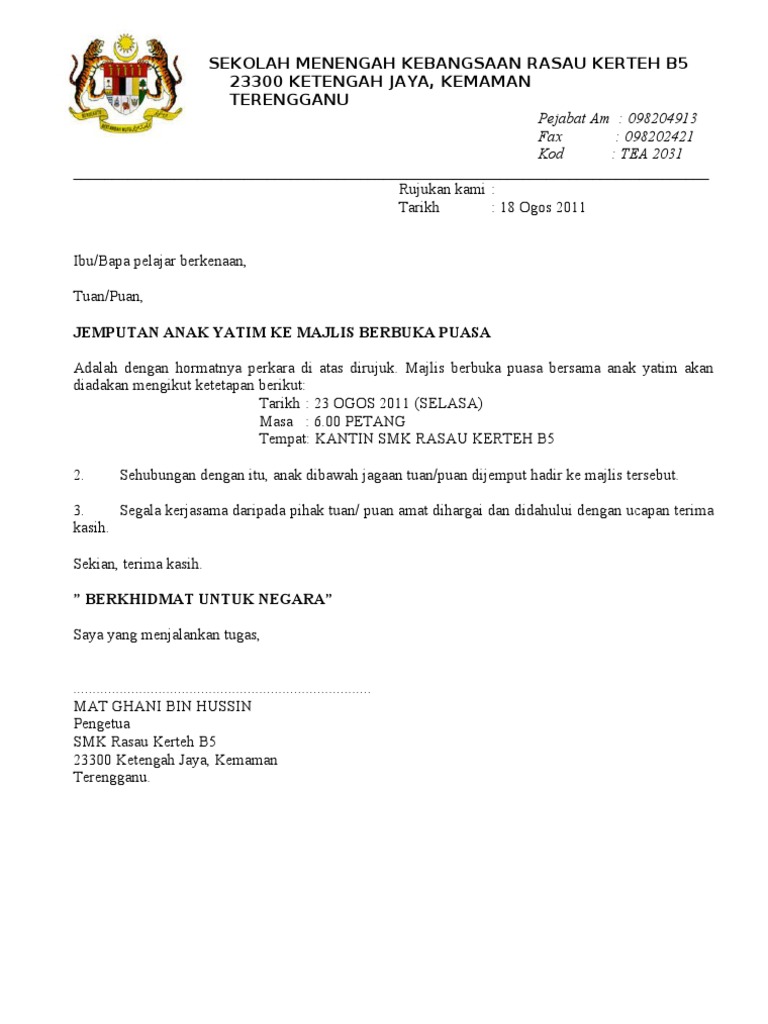 Contoh Surat Jemputan Buka Puasa