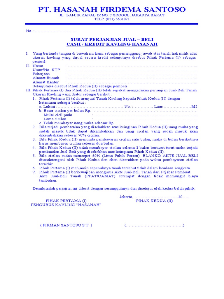 Surat Perjanjian Jual Beli Kredit Tanah Lokasi Kavlingan Docx Google Drive