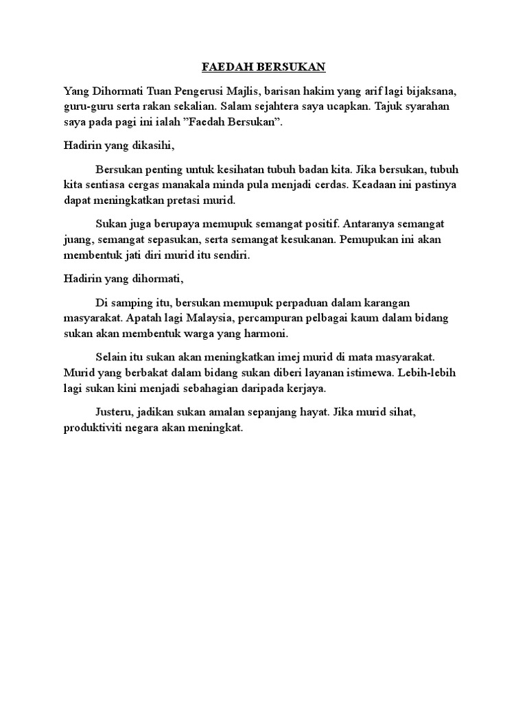 Contoh Karangan Pidato Upsr
