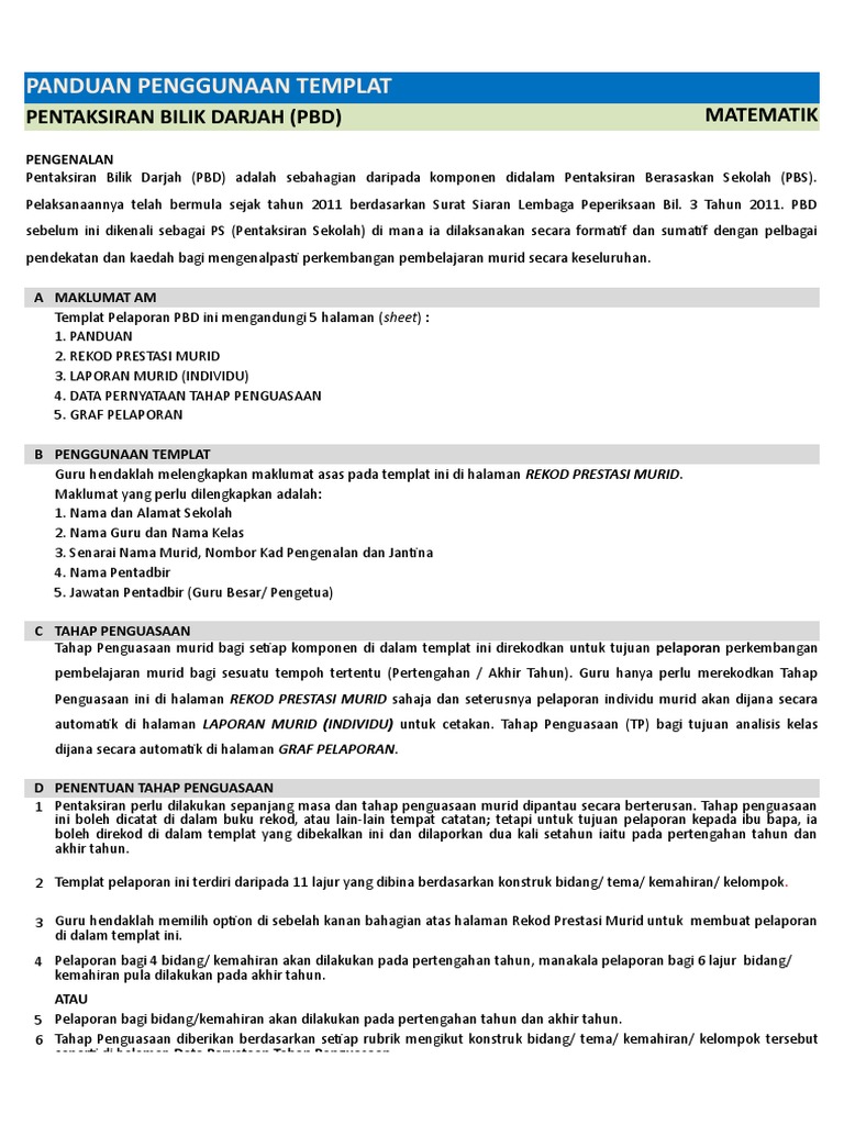Templat Pelaporan Pentaksiran Bilik Darjah Pbd Versi 3 0 Baru Pendidik2u