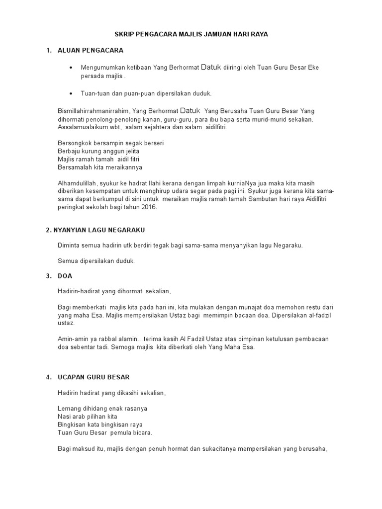 Teks Mc Sempena Majlis Hari Raya Aidilfitri 2013 In 2020 Teks Mathematics
