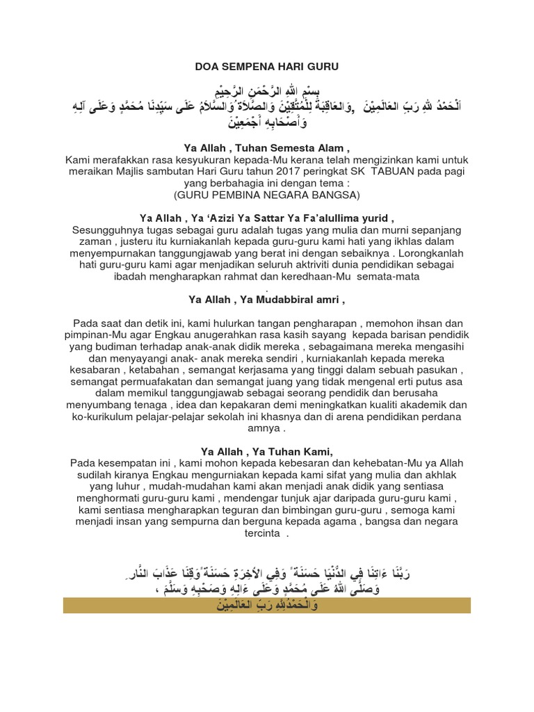 Doa Sempena Hari Guru 2017 Docx