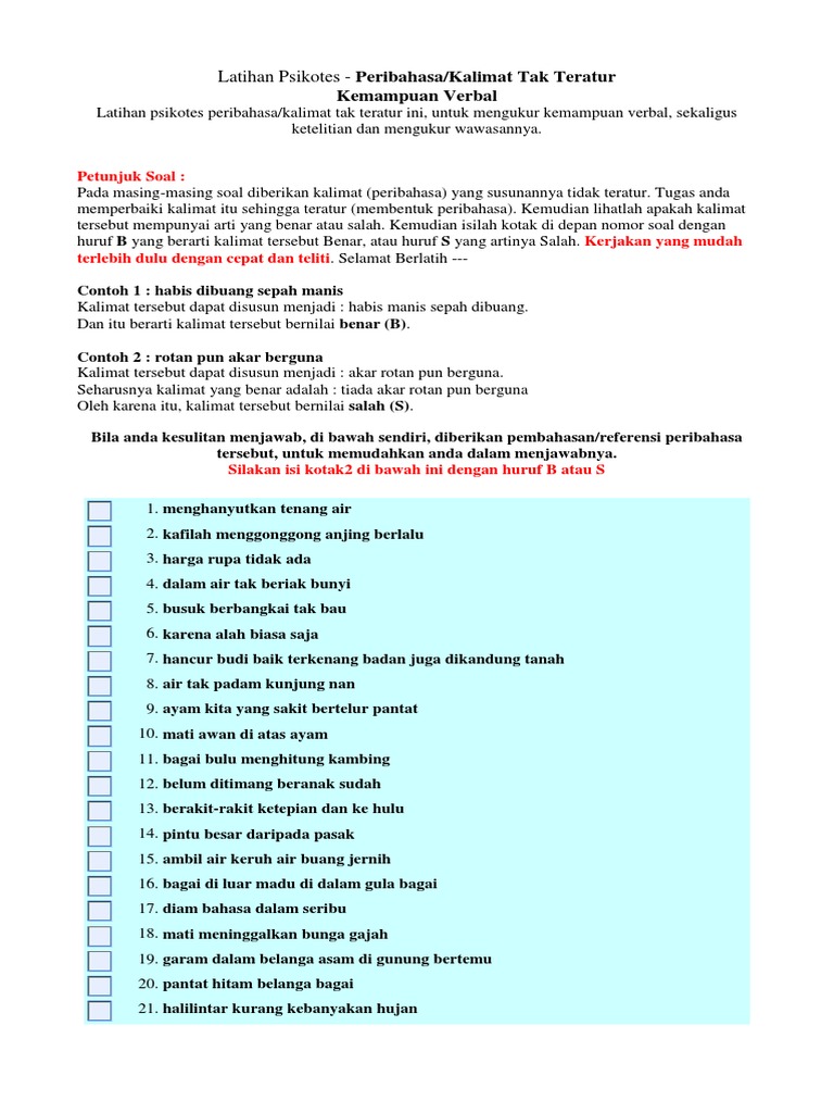 Latihan Psikotes Peribahasa Kalimat Tak Teratur Kemampuan Verbal