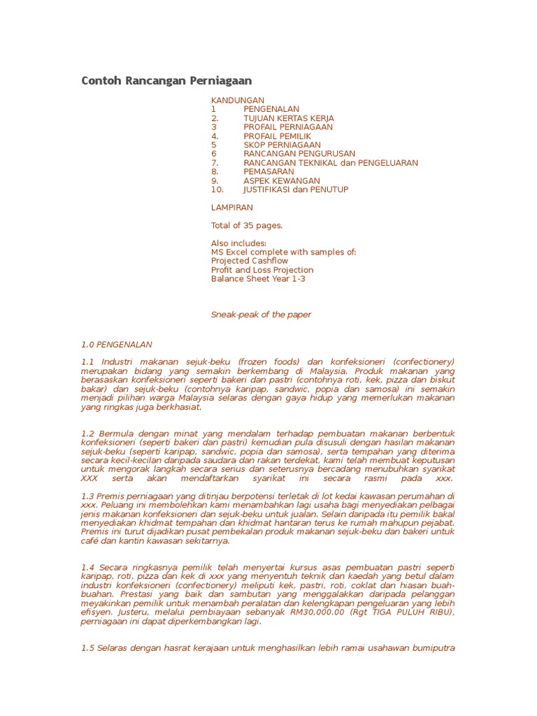 Contoh Rancangan Perniagaan