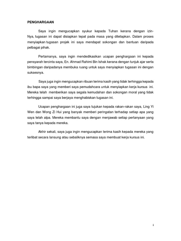Saya Ingin Merakam Penghargaan Dan Ucapan Terima Kasih Kepada Mereka Yang Telah Menolong Dan Membantu Saya Dalam Menyiapkan Dan Menjalankan Kajian Ini