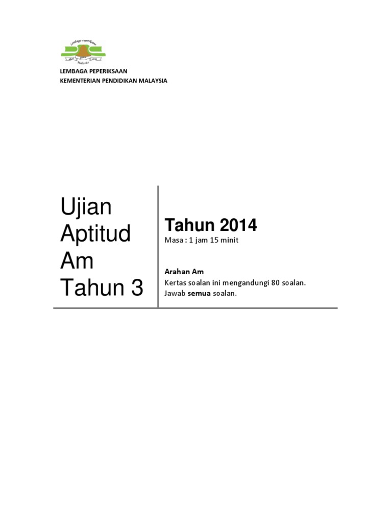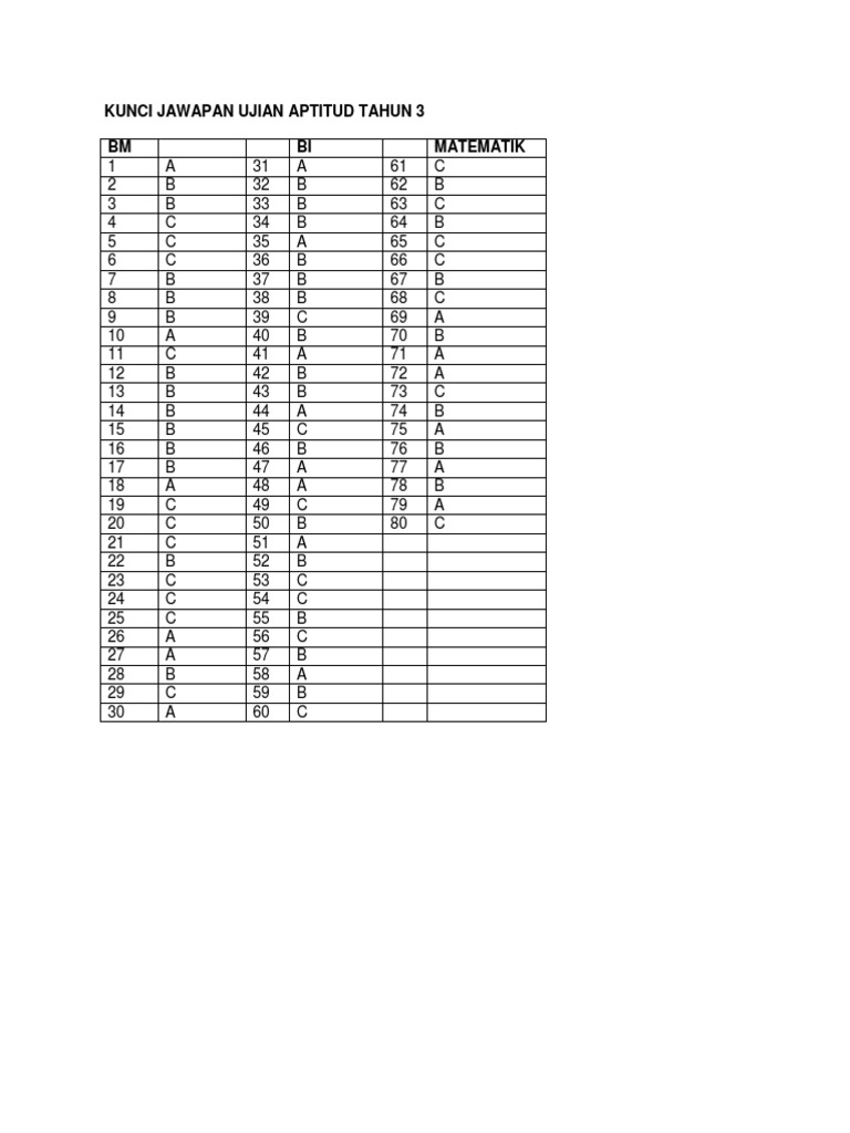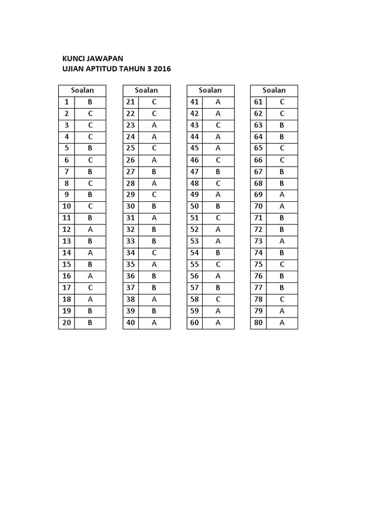 Kunci Jawapan Ujian Aptitud Tahun 3 2015