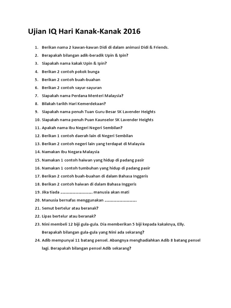 Ujian Iq Hari Kanak Kanak 2016