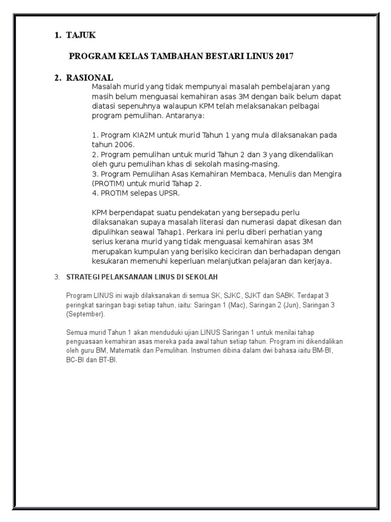 Contoh Soalan Ujian Linus Tahun 1 2017 Soalan At