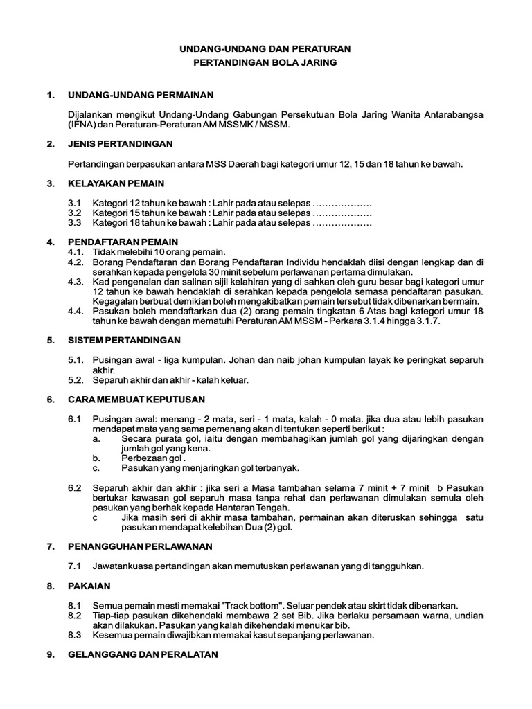 Doc Peraturan Bola Jaring Mss Selangor 2014 Abdul Aziz Haji Salleh Academia Edu