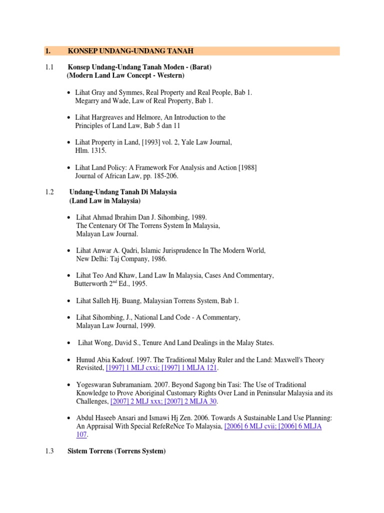Undang Undang Tanah Di Malaysia Muhammad Fathi Yusof Universiti Teknologi Malaysia Pdf Free Download