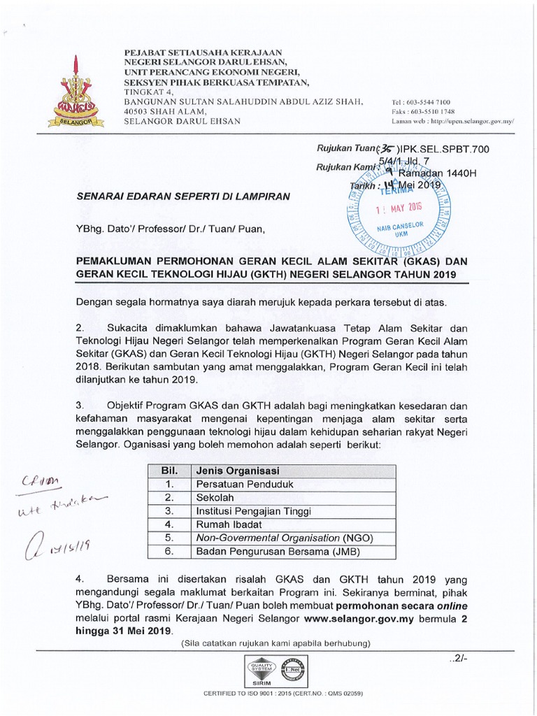 Suk Permohonan Geran Kecil Alam Sekitar Gkas Dan Geran Kecil Teknologi Hijau Negeri Selangor 1