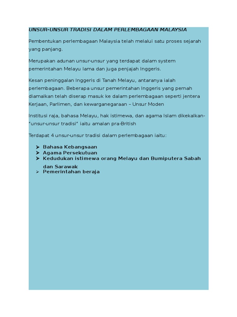 Unsur Tradisi Perlembagaan Malaysia Pdf Document