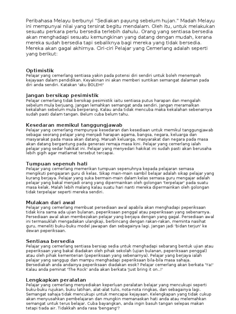 Spm Contoh Karangan Ciri Ciri Pelajar Cemerlang