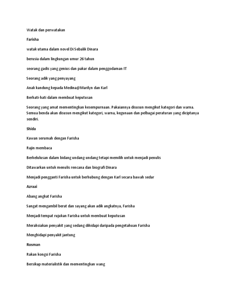 Farisha juga seorang yang cantik. Novel di sebalik dinara. Seorang yang berani farisha berani menerima tawaran daripada soft lab untuk menggodam sistem dinara yang. Watak dan perwatakan novel tingkatan 4 watak dan perwatakan.